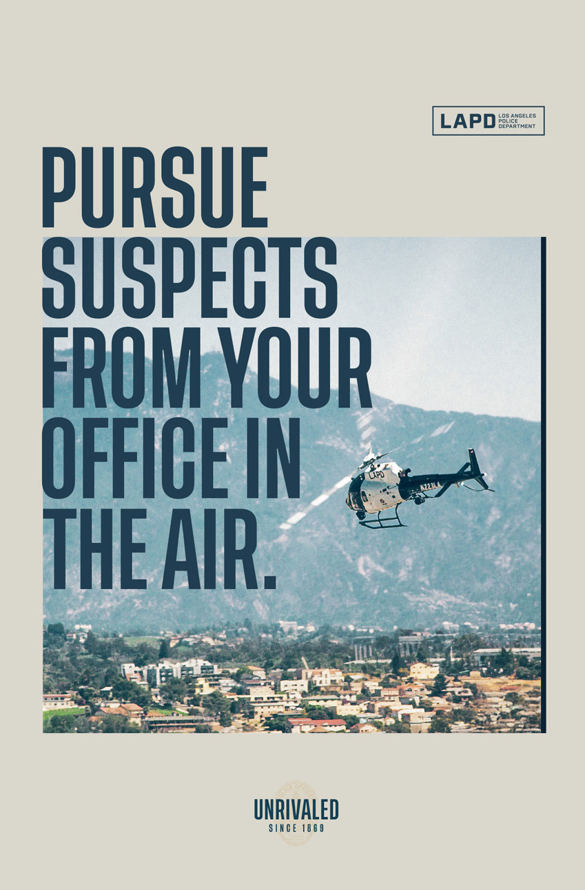 So, we hit them with a message that cuts through: An Unrivaled Shield. Not a job. A mission. Not just pride. Precision. Backed by over 250 career paths, world-class tools, and a legacy since 1869, the LAPD isn’t a relic — it’s still the best to ever do it. The campaign hit hard across digital, social, streaming, and outdoor blanketing parts of L.A., reminding the city — and its future officers — what the badge still stands for. LAPD. Unrivaled Since 1869.
